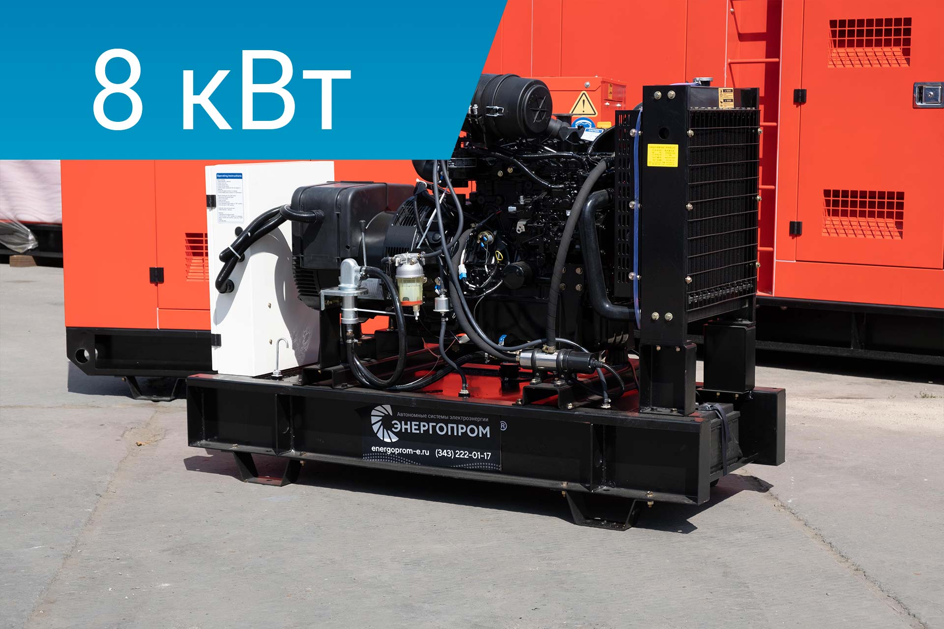 Дизельный генератор на 8 кВт с двигателем Yanmar в открытом исполнении. Панель управления на базе контроллера Deep Sea 6120. Автомат защиты генератора 3P, устройство подзарядки АКБ (питание 220В) SmartGen 5A и электрический подогрев охлаждающей жидкости SmartGen HT10M (питание 220В). Электронный датчик уровня топлива, масляный насос, промышленный глушитель, аккумуляторная батарея, датчик давления масла (аварийный и измерительный). Датчик температуры охлаждающей жидкости.